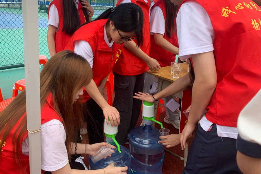 体测前,青年志愿者们伴着晨光将医药箱、桌椅、帐篷等物资搬运到体育馆附近,搭建必赢242net官网党员志愿服务点,全面做好志愿服务各项准备。青年志愿者们热情高涨,全身心投入志愿活动中,及时为有需要的同学提供简单医疗,准备饮用水,帮忙冲葡萄糖水等,在终点处时刻关心同学们的身体素质,留心观察长跑结束后的同学是否需要帮扶或提供其它帮助等。青年志愿者们笃行“心存大爱图奉献,愿以无私付人生”,以自身实际行动弘扬“奉献、友爱、互助、进步”的志愿精神。