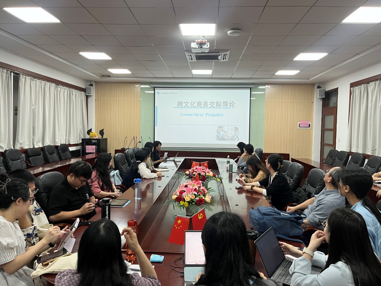 在课程思政案例分享环节,张哲以“跨文化商务交际导论”课程为例,详细介绍了她在课堂上如何引导学生理解和尊重不同文化背景下的商业行为和交流方式。她通过案例分析的互动教学方法,让学生体验和思考商务交际中的文化差异,从而增强跨文化沟通能力。张哲强调,外语专业教育不仅要传授知识,更要培养学生的国际视野、文化自信和家国情怀。
