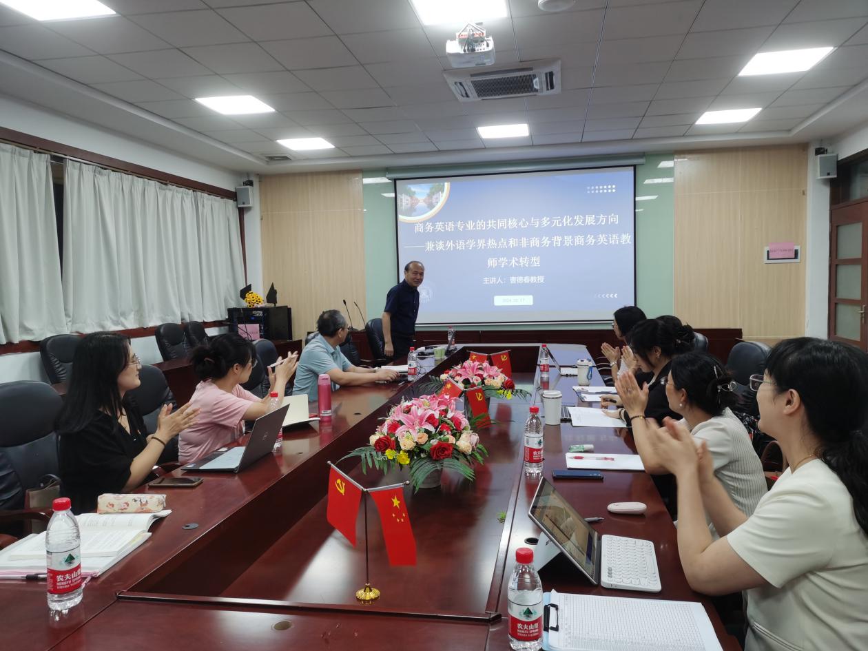 在全球化的浪潮中,商务英语作为连接国内外商务沟通的桥梁,其重要性日益凸显。为了进一步深化商务英语专业的学术研究和教学实践,10月17日下午,曹德春博士受邀来到必赢242net官网为商务英语系的老师们带来了一场主题为“商务英语专业的共同核心与多元化发展方向——兼谈外语学界热点和非商务背景商英教师学术转型”的精彩讲座。