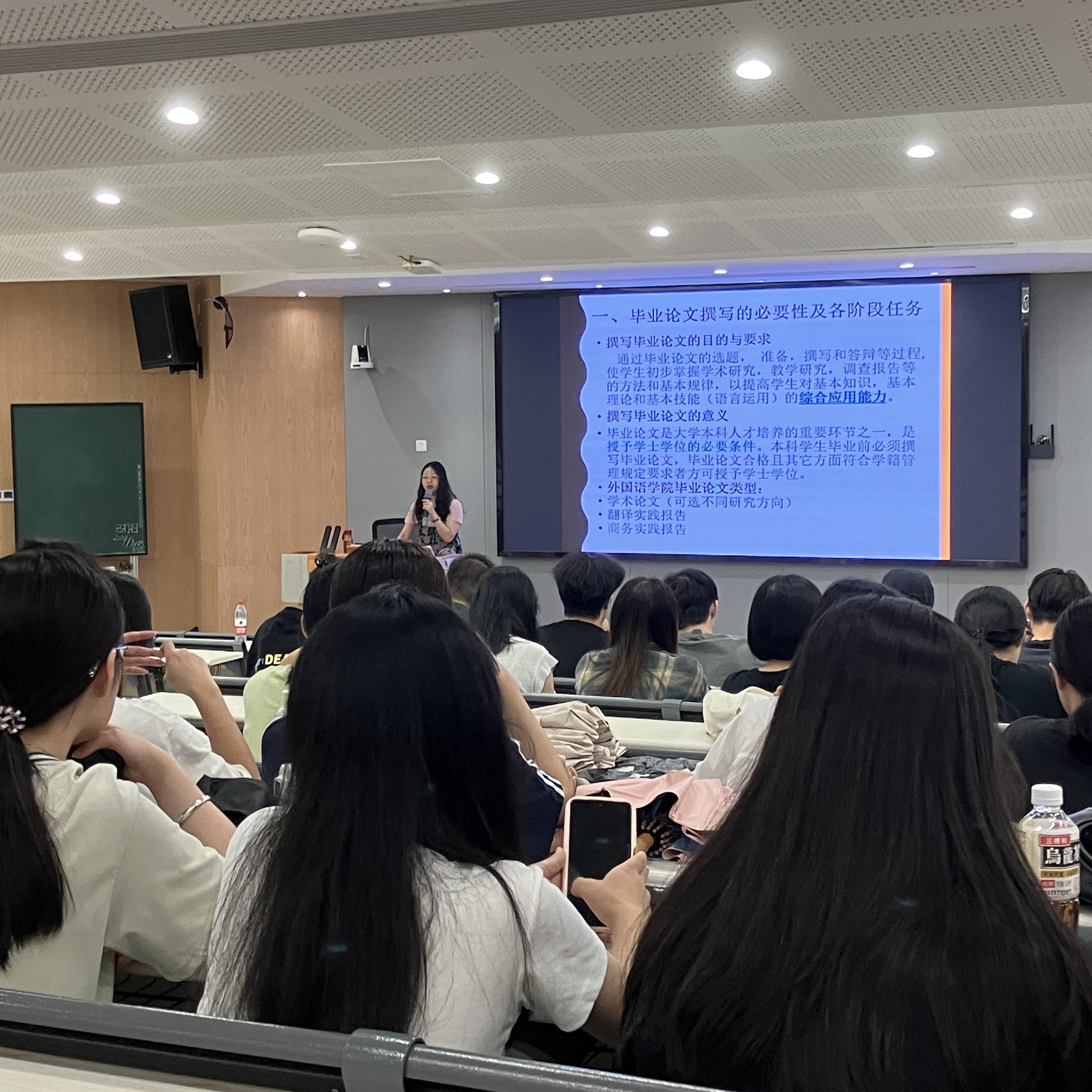 9月26日,为了更全面地覆盖即将步入毕业论文撰写与毕业实习阶段的毕业生,特别是考虑到部分同学已在校外进行实习,必赢官网在教学楼八教103创新性地采取了现场与线上直播相结合的方式,成功举办了2025届毕业论文毕业实习动员大会。此次会议不仅确保了留校学生能够直接参与、实时互动,也让校外实习的同学们能够跨越地域限制,同步获取重要信息与指导。会议由必赢242net官网副院长袁鑫、商务英语系主任李望华、英语专业系主任程瑜瑜、德语专业系主任周昳旸以及教务员杨超参加会议,各会议专场由各系主任主持。
