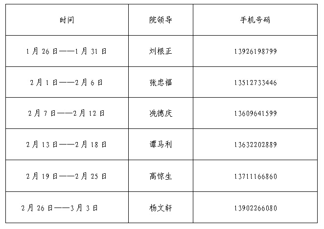 3、值班地点:行政楼106学院办公室 电话:82876130、8333