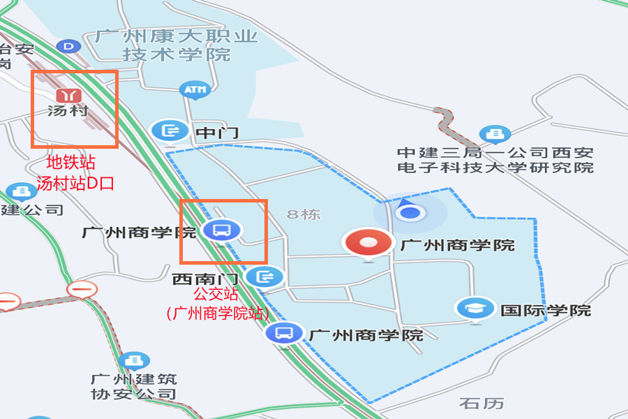 2.自驾车者可从不同的线路进入广河高速公路→知识城出口→学校大门(前行500米);或从不同的线路进入广汕公路(G324)→九龙大道→学校大门(前行500米)。