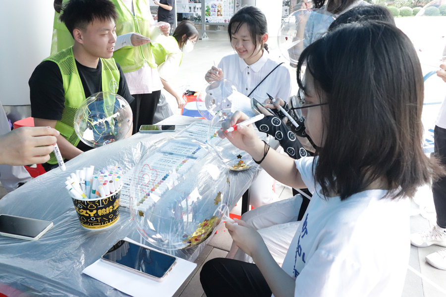 风格各式各样,涂鸦内心世界。本次活动为同学们提供透明气球、透明扇子与透明袋子三种可涂鸦DIY的材料,同学们领取任一材料后,用手中的画笔随心完成涂鸦,创作出与众不同的作品。同学们用独特的视角,涂出所想、画出所思,在涂鸦中释放情绪、解压心灵,创造出一幅幅精美的作品。这些作品风格多样,展现了同学们的巧妙构思,以及涂鸦时不同的心理状态。