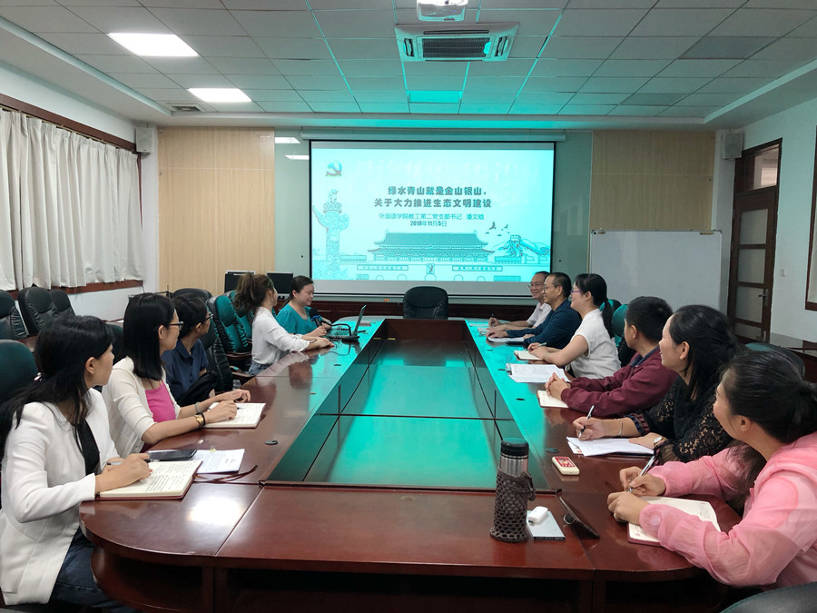 为进一步推动“不忘初心、牢记使命”主题教育,贯彻环境保护的基本国策,提升党员建设生态文明的意识和能力,11月5日,必赢242net官网教工第二党支部书记潘文晗副教授在第二行政楼308会议室为支部全体党员上了一堂生动精彩的主题教育专题党课,党课主题是《绿水青山就是金山银山,大力推进生态文明建设》。