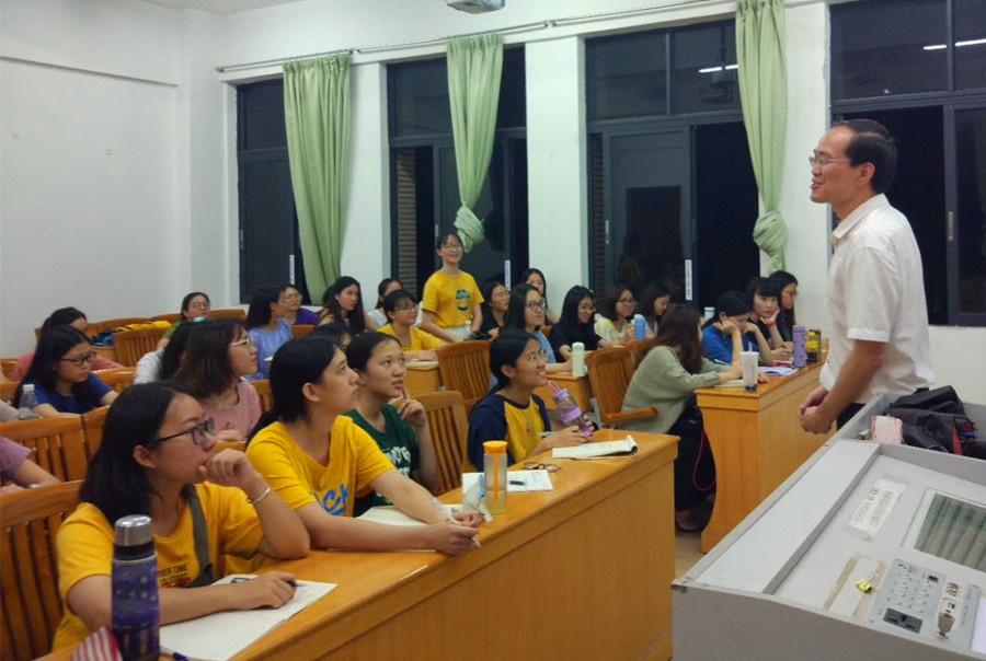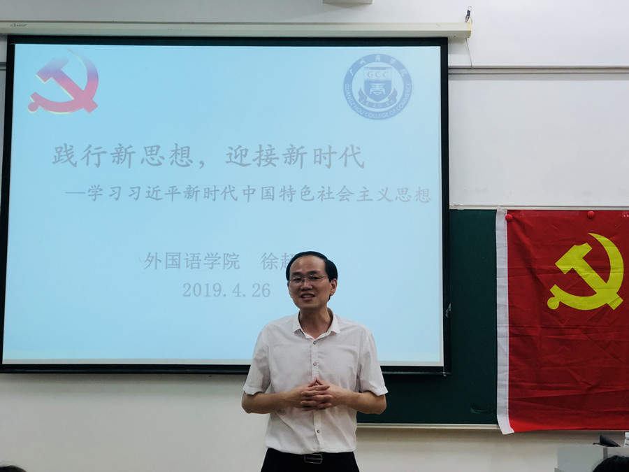 徐超以《前行新思想,迎接新时代——学习习近平新时代中国特色社会主义思想》为题开讲了本次学习班第一课。他从把握新思想的基本内涵、认识新思想的重大意义、学习新思想的主要内容、贯彻新思想的基本方略和新时代大学生的责任担当来开展授课。课程中通过PPT讲授、案例分析、实践故事分享、学生专业现状等来传授新思想知识、分享经验、增强学生对新时代的责任意识,内容通俗易懂,引起学生共鸣,赢得阵阵喝彩。