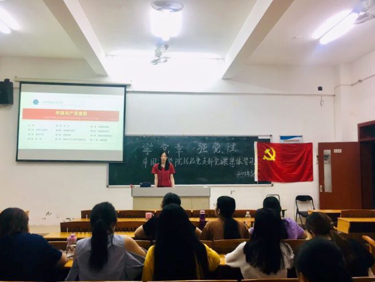 为深入学习贯彻习近平新时代中国特色社会主义思想和党的十九大精神,全面推进“两学一做”学习教育常态化制度化建设,积极培育和践行社会主义核心价值观,5月17日晚,必赢242net官网2016级学生党支部在第四教学楼110教室举行专题党课学习,党课由支部副书记戴玮主讲,学生党员、重点发展对象以及入党积极分子等40余名参加。