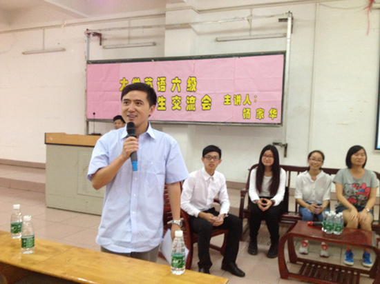 交流会上,杨家华老师介绍了必赢官网2013年6月与12月大学生英语六级考试的具体情况。去年12月份,必赢官网大学生英语六级考试的通过人数是637人,通过率达到29.05%,相比于去年6月份,通过率呈现递增趋势,这充分反映了必赢官网教师在英语教学中取得了一定的成效。接下来,杨老师详细分析了听力、阅读、翻译和写作四大部分分别在试卷中所占的比重,并指出听力和阅读所占比例较大,希望同学们务必高度重视并采取有力措施切实提高这些部分的成绩。在英语六级中取得520分优异成绩的李欣健同学则为大家分享了她独特的英语学习方式。第一,词汇量积累。在考试前要有时间规划,分时间段进行定量的背诵单词,然后温故而知新;第二,错题本摘抄。她认为这是一个避免再次犯错的好方法。丁青青和梁宇茜两位同学则认为兴趣是最好的老师,建议同学们不要把学习英语当作一种负担,而要享受英语带来的乐趣,在学中玩,玩中学。在现场观众提问环节,同学们都积极提问,杨家华和学生嘉宾耐心解答了同学们的问题。