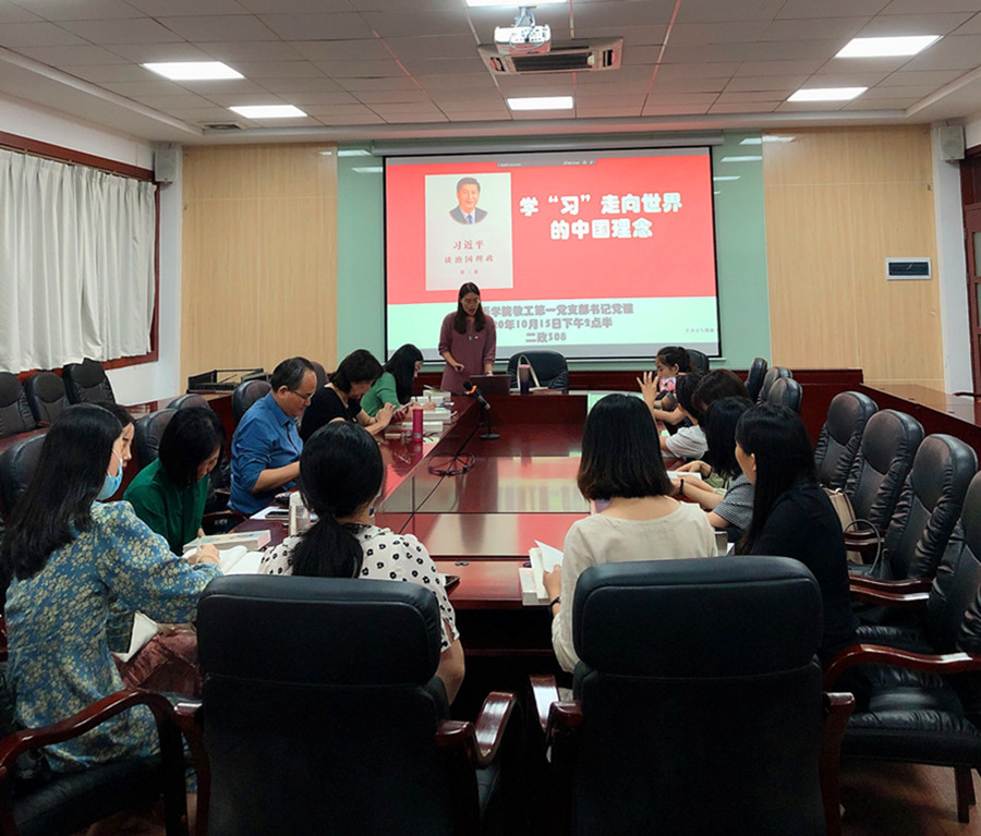接着,几位党员同志分别结合自身情况发表感想。张慧慧同志提到,应该进一步将文化自信注入到新时代的学生心中。院长马蔚兰同志认为,“《习近平谈治国理政》一书让人民对习近平主席的领导充满了信心”。她分享了自身的军队经历,感叹道只有在中国特色社会主义制度下,军队才能发挥最强大的力量。李望华同志认为“作为外语教师,我们可以通过比较的眼光对比中国与西方国家的制度和成效。中国特色社会主义制度下的统筹观念和大局观念是中国可以比其他国家在困难中迸发出更顽强生命力的根本。”
