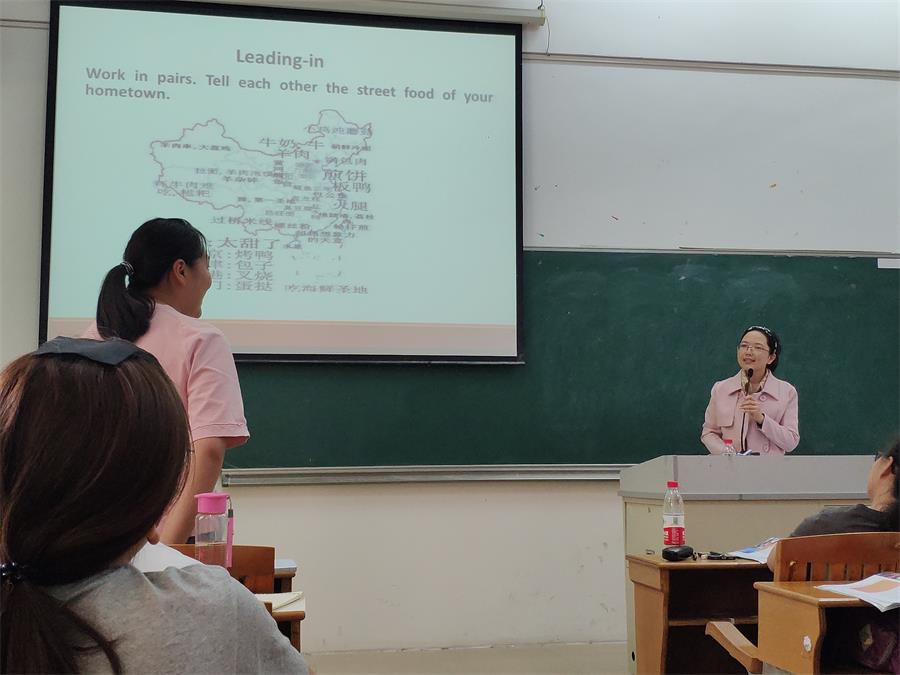第二节研讨课由周晓丽主讲,课程主题是“Street Food”。周晓丽由一个有趣的英文原版视频引入话题,同学们积极参与互动,整个课堂氛围活跃。周晓丽在课堂上与学生互动协同,利用图式认知,以任务问题导向将课内外知识融入大学英语课堂教学,培养学生的文化意识和国际视野,同时锻炼了学生的批判性思维。
