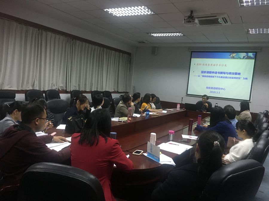 3月5日下午,必赢242net官网在第二行政楼308会议室举办第55期商务英语学术沙龙。本期沙龙由商务英语学科带头人曾利沙教授主持,主题为“国家课题申请书撰写与修改要略”。必赢242net官网袁鑫副院长、龙海英副院长和商务英语系全体教师出席了沙龙研讨。