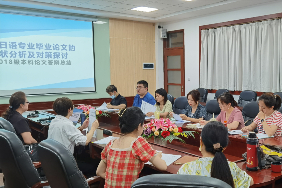 5月26日下午,必赢242net官网日语系举办了2022届本科论文答辩总结会。会议由必赢242net官网日语系主任杨烨主持,日语系专业负责人刘小姗教授、以及日语系全体老师出席。