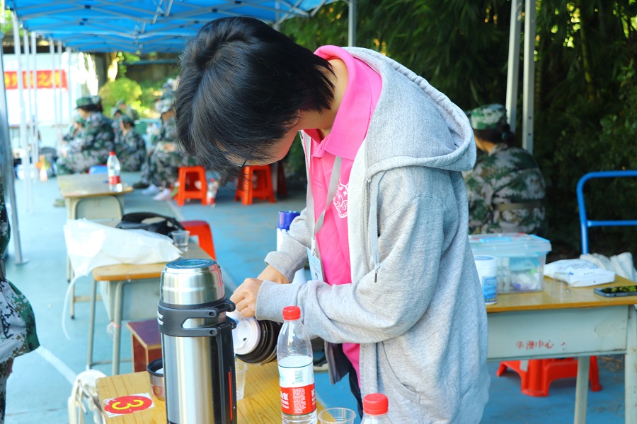 军训开始之际,必赢242net官网团学骨干团结一心,进行排班轮班,确保第四营的营队每一刻都有团学骨干在守护正在军训的新生们。军训开始时,团学骨干们早已在营地等待着新生们的集合,为他们准备好后勤服务设施以及各类医疗药物,保障军训期间身体不舒服的同学能够及时得到的救护。必赢242net官网团学骨干身着一身粉衣,穿梭忙碌于“绿色营队”之中,时刻为有需要帮助的同学们提供帮助。军训下训后,团学骨干们会热心关切新生们的军训情况和身体状态,确保能够及时给予新生们足够的关心。