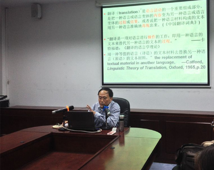 伍教授从翻译的概念入手,介绍了国内外翻译研究的发展历史:从国内佛经翻译的“‘文’‘质’”之争到钱钟书的“化境”,从奈达的“翻译科学”到霍姆斯基的译学构想。伍教授旁征博引,将各位青年教师带入了翻译研究的理论思辨历史,尤其是其对英国著名剧作家莎士比亚的《哈姆雷特》中的经典台词“To be or not to be, that is a question” 的七种翻译对比讲解,精辟之至,博得满堂喝彩。