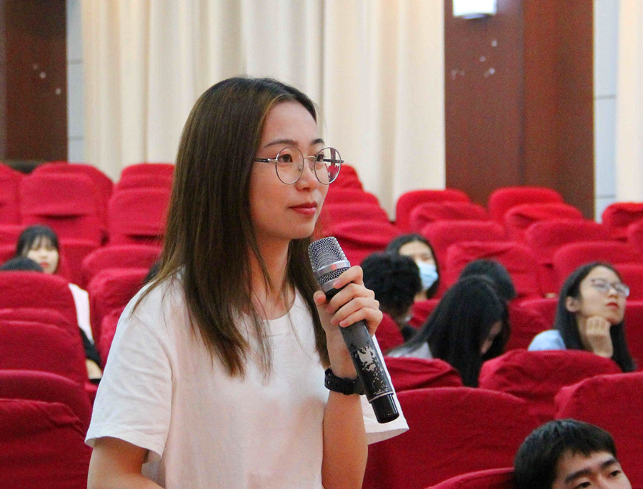 潘文晗分析了近三年大学英语四级考试的翻译试题,鼓励同学们多听多看英语新闻和文化节目,并以习近平总书记系列重要讲话的英文版为例子讲授常用汉译英翻译技巧,将课程思政与英语教学有效耦合,获得与会学生的普遍好评。陈淑仪认为,听力是英语学习的难点,故应该将精听与泛听结合,提高对英语听力关键的敏感度。在阅读和写作方面,陈晓英分享了在全国大学生英语竞赛全国决赛三等奖的参赛经验,重点介绍了灵活使用字、词、句,段的方法,让与会学生受益匪浅。在观众互动环节,同学们积极提出疑问,老师和学生嘉宾认真细致地逐一进行解答。