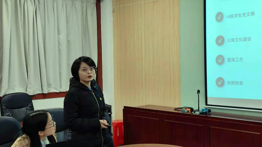 随后,学院各辅导员按所带年级的高低顺序依次进行述职。各辅导员围绕疫情防控、学生日常管理、思想政治教育、校园维稳处理、诚信教育与学风建设、毕业生就业指导与服务工作、创新创业、心理健康等方面具体工作进行了述职,回顾总结了自己在2020年开展的重点工作、创新工作与特色工作,内容详实、亮点频出。同时,表达了工作中的收获与感悟,及对未来工作的规划与展望。其中,2020级新生辅导员樊丽梅还汇报了她通过重视与专任老师及时沟通所带来的工作感悟,给大家带来了新的工作思路。