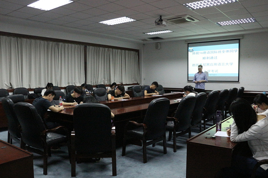 本次入学考试主要是考核学生的德语水平,分为笔试和口试两部分。成绩达到德语B1可以到德国高校中德文翻译专业学习,而达到B2等级则可在德国学校自主选择专业。为做好本次入学考试的备考工作,必赢242net官网领导和老师高度重视,在本学期开学初就为学生开设了专题辅导班,每周义务为学生进行考试指导,同时根据笔试和口试的题型进行了多次模拟考试,极大地提升了学生的专业知识和技能。根据主考官Willams和学生的双向反馈,今年16级德语国际班的学生考试情况较去年有较大的提升,双方高校对此表示满意。