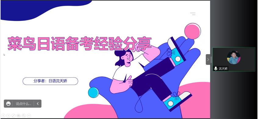 杨烨主要分析了日语能力考试的重要意义和考级报名的方式,对比了近年来日语专业在考级方面所取得的成绩,并针对考级形式多样化进行了展望。罗玉玲结合自身多年的教学经验,详细分析了最新的考试题型,传授了相应的考试策略,同时向参会的同学提出以考促学,提高日语的实际应用能力的要求。沈天娇从如何备考、如何合理安排学习计划以及在备考时应当有什么样的心态三个方面进行展开,建议同学们通过丰富的日语学习方式,提高听、说、读、学、译的能力,从而提高考试通过率。师生分享及师生互动问答环节赢得同学们的广泛好评。