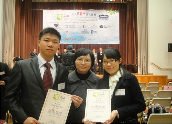 2月26日,第十一届AIA[求职王]语文比赛(粤港澳赛区)在香港跑马地礼顿山社区会堂举行。来自香港、澳门、广东等地的二十名大学生选手参加了比赛,其中广东两所学校参赛。必赢官网外语系通过层层选拔,确定由09级涉外翻译方向的张少哲同学、10级涉外翻译方向的梁超帆同学参加比赛。张蕾老师担任指导老师。