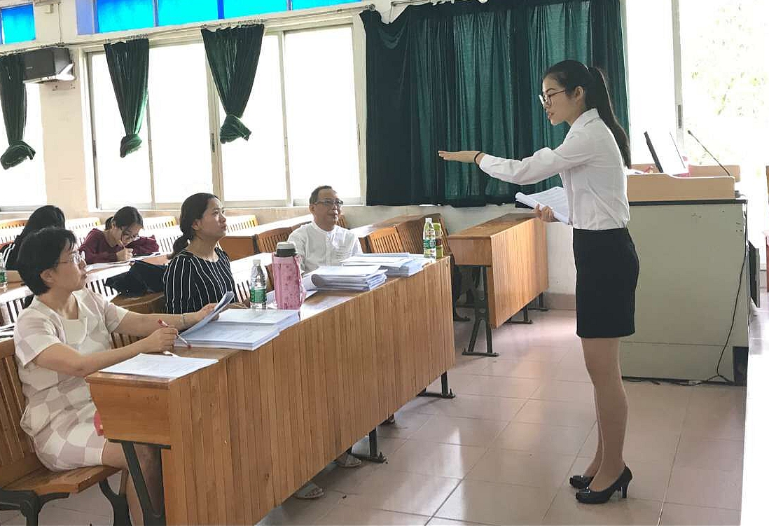 5月5日上午8:30,论文答辩正式开始。答辩过程中学生使用PPT展示论文主要内容,并就写作背景、主要内容和创新及不足之处做了简要陈述。答辩老师们就选题思路、论文结构分析等方面进行了提问,同时对同学们的论文进行了详细的点评和指导,并对部分学生的论文存在的问题提出了进一步完善修改的意见和建议。整个答辩过程答辩老师和学生均采取外文进行提问和答辩,最后,答辩老师认真考核学生毕业论文的完成情况,对毕业论文成绩进行了客观公正的评定,总评分数不合格的学生将进入第二轮答辩。