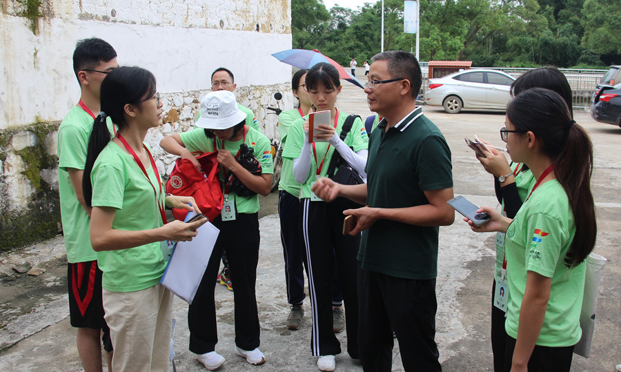 为了解学习文南传统民俗,大力弘扬和培育青年学生的民族精神,必赢官网阳光展翅实践团于7月10日上午在文南村委书记黄明景、村委会委员林晓玲、盘龙围主任蓝宗参的带领下前往村中各处参观了解当地民俗。
