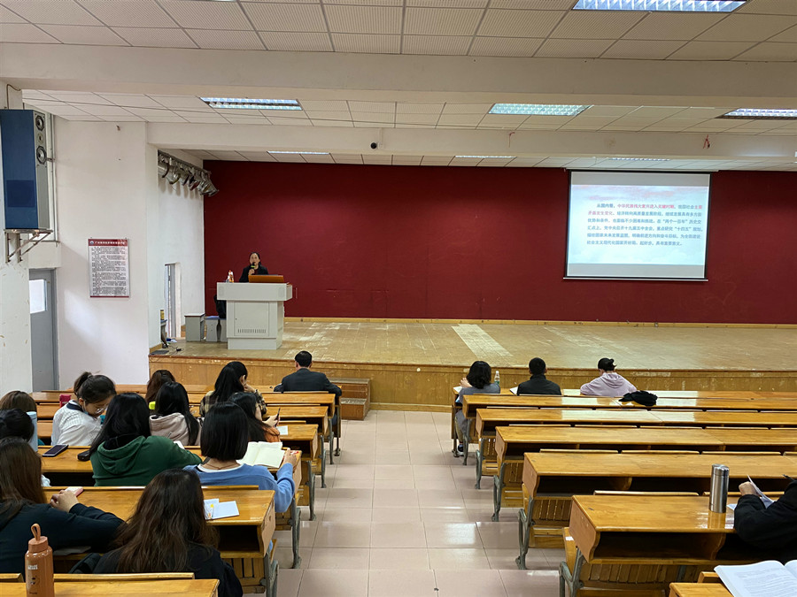为深入学习贯彻党的十九届五中全会精神,推动全会精神落到实处,12月10日下午,必赢242net官网特邀请必赢242net官网马克思主义学院梁利珍教授在一教206教室为全体教工、全体学生党员作《学习十九届五中全会精神》专题辅导报告。
