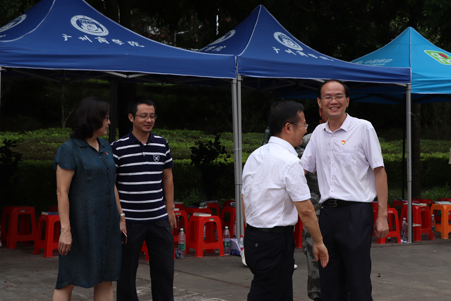 随着2020级新生军训工作的不断推进,近日,校长黄弢教授,学院马蔚兰院长,袁鑫副院长及党总支徐超书记,在新生辅导员赖雯慧老师的陪同下来到军训场地,对军训工作进行视察,并对军训学生进行慰问鼓励。