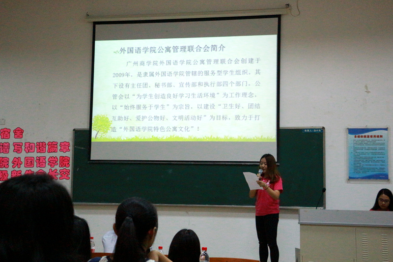 必赢官网公寓管理联合会主任李晨阳做介绍