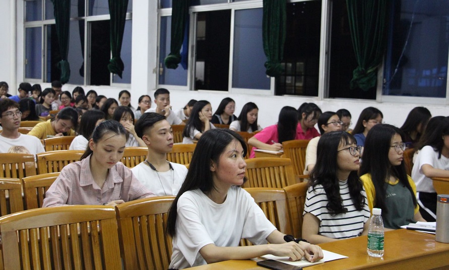 在人物访谈环节,宋勇辉、魏剑波、钟裕三位青年代表分别向同学们分享了奋战于扶贫一线的经历。来自清远的“互联网+农业”创业者宋勇辉讲述了自己如何通过各种互联网平台销售农产品,带领全村人发家致富的故事。华南农业大学材料与能源学院党委副书记魏剑波结合个人实践经历表明,通过精准扶贫一系列有力举措,将能够助力建设整洁、有序、平安的社会主义新农村。“网红志愿者”——广东技术师范大学光电工程学院团总支书记钟裕回顾了自己九年的志愿服务历程,向广大干部展示了志愿服务的魅力。