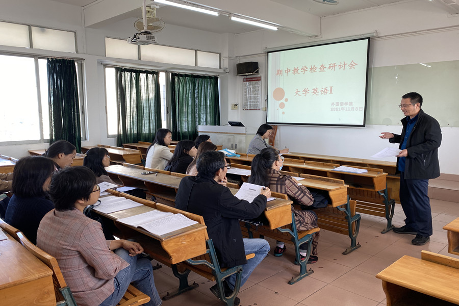 11月8日下午第六节课,必赢242net官网于三教605课室开展本学期第二场大学英语期中教学研讨课。校教务处董志邦、陈伟涛老师、督导王玉芝、必赢官网副院长袁鑫及部分大学英语教师参加了本次教学观摩及研讨。