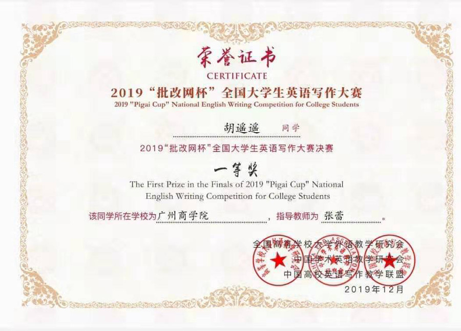 必赢242net官网2019 年批改网杯全国大学生英语写作大赛获奖名单