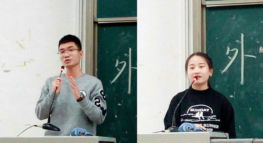 会议上,辅导员黄玉亭发表了诚信考试动员讲话,突出了诚信考试的重要性和必要性,鼓励同学们科学有计划地复习期末考。各班团支书分别从思想建设、班级活动、学风建设和下学期班级活动计划等方面做班干部工作展示。其中商务英语四班通过精美的PPT展示图表、数据和照片分享了班级活动成果,突出了积极有效的班级活动,爱学比学的学习氛围,张弛有度的班级纪律。德语1班重点介绍了清晰明了的班级规划,通过组建学习小组,全力攻关德语专业四级等级考试。商务英语5班在总结中从以往班级活动的成功案例特别介绍了策划组织活动的有效办法。商务英语7班突出分享了班级丰富多彩的“每周一练”体育活动。各班干部演讲侃侃而谈,各班工作亮点大放异彩。此外,2016级年级委员代表也发表了总结讲话,并提出在学生干部工作中细节决定成败、凡事都应未雨绸缪和突发时刻随机应变的工作体会。