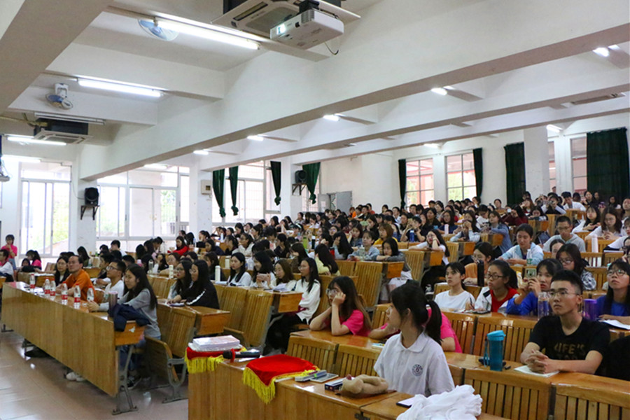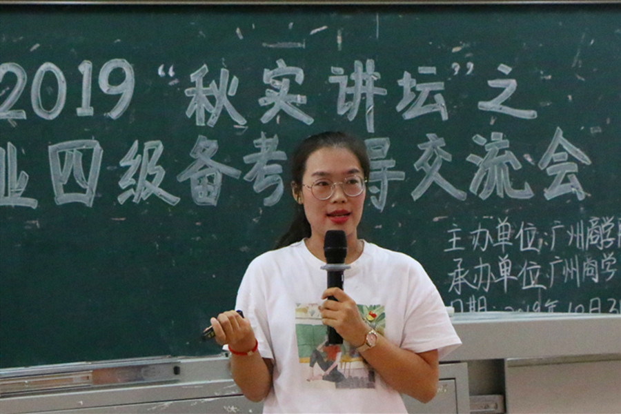 为提升外语专业人才培养质量,精准有效地做好专业考级考证指导,积极响应“不忘初心、牢记使命”主题教育的号召,必赢官网教工第一党支部、院学生会于10月31日下午在一教111联合举办2019年“秋实讲坛”系列讲座之英语专业四级备考指导交流会。学院党总支书记徐超,教工第一党支部书记、商务英语系教师李海燕,学院学生会指导老师郑灿玲出席现场,来自17、18级共300多名学生参加了讲座。