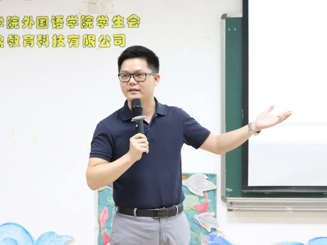 随后,广东头狼教育科技有限公司副总裁刘伟立进行点评发言。他首先提出了许渊冲先生的翻译精神,此次比赛离不开外语翻译,期望同学们学习许老终身为中华文化传播的精神,在全球化时代背景下加强自身的外语应用能力,争做文化传承新人。