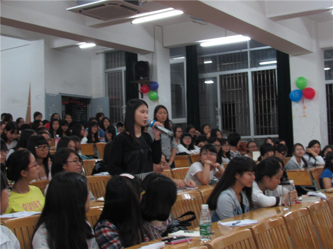 在本次的恳谈会上,来自外语系12级商务英语、涉外翻译、日语和德语专业方向的四位学长向14级的新生共同分享了本人大学三年关于学习、工作、生活等方面的心得体会,为师弟师妹传道授业解答疑惑:从李宇娟师姐身上新生们感受到了 “越努力,越幸运”的奋斗历程;从李昶颖师兄身上体会到了 “不要低估自己”的那份自信;在罗凤儿师姐身上学习到了如何把工作与学习兼顾好;更欣赏唐荣昌师兄用一口地道流利的英语与我们分享学习经验。在互动交流环节,新生们积极踊跃提问,四位学长一一为新生作了了详细的解答。