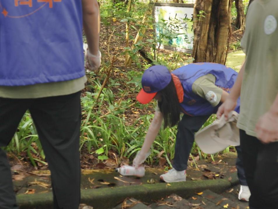 志愿林小青,干净绿色林。实践团一行人顶着烈日来到东山省级森林公园,沿着登山道,身穿马甲,手持清理工具,将山道废弃的烟头、塑料垃圾、废弃罐等垃圾收集后进行集中处置。点点微茫,亦能汇聚星河,通过队员们的双手还森林一片“绿”,让“百千万工程”突击队的汗水洒在“绿美广东”建设一线,为推进绿美罗阳生态建设贡献力量。