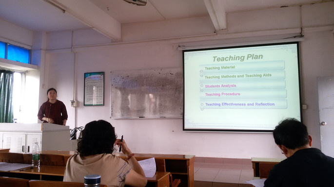 本次比赛采用全国比赛模式,分为英语组和商务英语组。每位教师按照比赛规则赛前半小时拿到说课题目,比赛分别为10分钟的说课和5分钟的回答评委提问,参赛老师认真准备,说课风格各具特色,有激情飞扬型的杨仰老师、张芳林老师,有娓娓道来的赖宝滢老师、吴峰松老师,其中赖宝滢老师教学思路清晰,通过教学步骤引导学生分析问题,杨仰老师教学模式新颖,用小组分工的参与式教学方式,提高学生实践能力。