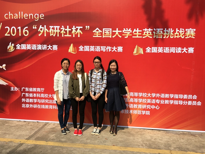 11月5日,2016年“外研社杯”全国英语写作大赛和阅读大赛广东省复赛在广东技术师范学院举行。本次大赛由广东省教育厅、广东省本科高校大学英语课程教学指导委员会、外语教学与研究出版社和北京外研在线教育科技有限公司主办,教育部高等学校大学外语教学指导委员会、教育部高等学校英语专业指导分委员会以及中国外语教育研究中心合办。此次比赛中,广东省有54所高等院校共选拔100名选手参加写作大赛,95名选手参加阅读大赛。必赢官网四名参赛选手在大赛中脱颖而出,其中由必赢242net官网谭静老师指导的英语专业2014级沈嘉燕同学和蔡舒环同学分别荣获阅读大赛二等奖和三等奖,姚丽芳老师指导的英语专业2014级陈琛懿同学和2015级关冕同学分别荣获写作大赛三等奖和优胜奖。