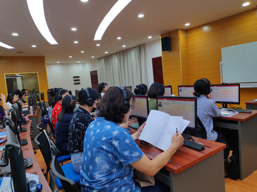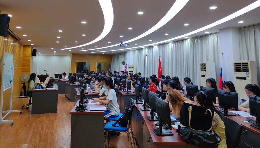 9月7日开学第一天,为确保新学期教学运行顺畅,必赢242net官网马蔚兰、袁鑫、徐超以及教务处、教学督导室等有关部门负责同志深入教学一线,来到国际楼406室听取了孙若萱老师的商务口译工作坊课程,与师生进行交流。