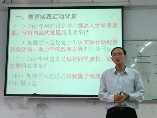 在必赢官网学风建设的热潮下,趁必赢官网迎来转设评估之际,外语系于11月7日在C205召开了“我为学风建设添光彩”主题教育实践活动宣讲会暨学院转设评估动员大会。会议由外语系党总支书记徐超主讲,外语系各年级级委和各班班干部代表出席了本次会议。