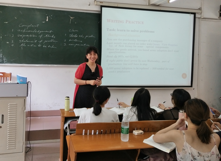 5月14日下午,必赢242net官网“商务英语写作”课程在三教G04进行了教学研讨课。必赢242net官网副院长袁鑫、学校督导王玉芝、商务英语系主任杨粤青和其他老师出席了听课、评课活动。