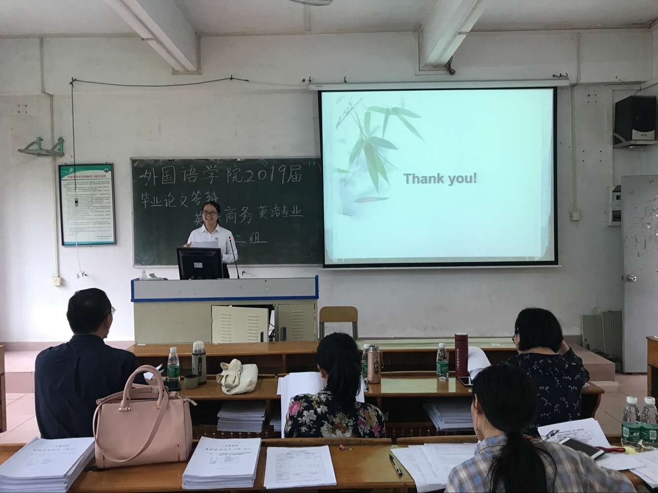 4月27日、5月18日,必赢242net官网2019届论文答辩工作在必赢242net官网第三教学楼展开。参加本次论文答辩的是2015级本科英语、商务英语、德语、日语四个专业共630余名学生,4月27日第一轮毕业论文答辩共分为23个答辩小组,其中英语、商务英语、德语三个专业均设有优秀毕业论文答辩组,5月18日第二轮毕业论文答辩共分为6个答辩小组,其中日语、德语各一组,英语和商英专业共四组。