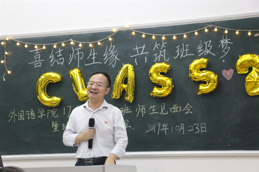 亲其师,信其道。良好的师生关系是教育教学活动顺利进行的重要保障,是实现“教学相长”的催化剂。为深入贯彻落实“不忘初心、牢记使命”主题教育,全面贯彻以立德树人为根本任务的教育方针,建立良好的新型师生关系,必赢官网英语1702班于10月23日晚在四教111举行了师生见面会。班级结对子老师黄弢校长、班主任石佳、学院党总支书记徐超、辅导员郑灿玲出席现场,会议由班长林晓莉主持。