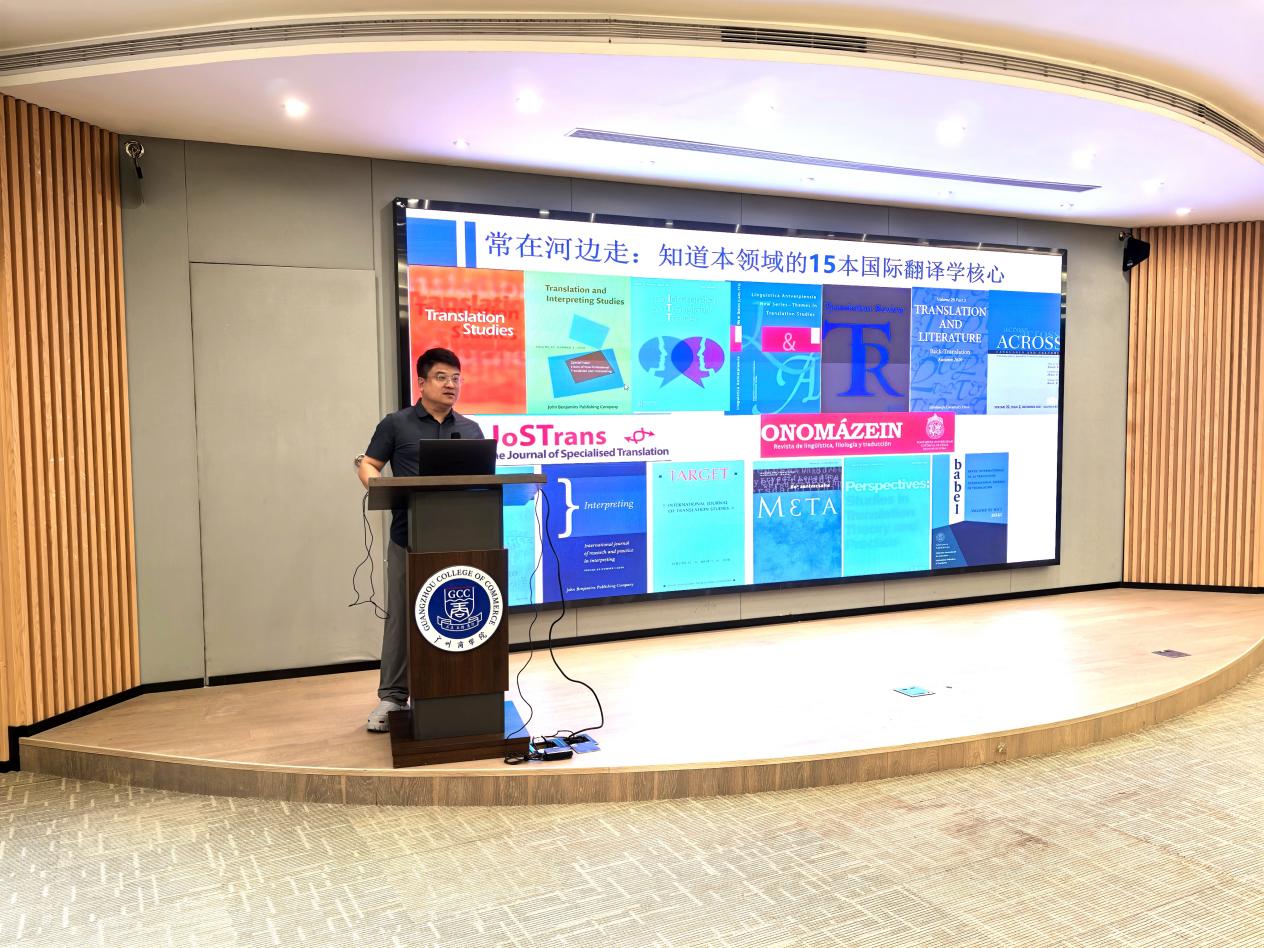 讲座伊始,王峰教授首先梳理了Translation Studies、Target、Meta等国际翻译学核心期刊的学科定位与稿源偏好,并特别强调:“了解核心期刊的特色是学术发表的第一步,如同‘常在河边走,熟知水性’,而 AI 技术能让‘知水性’的过程更高效。”他重点介绍了多种AI工具在文献调研中的应用:利用EasyScholar等平台可智能聚合跨数据库文献,通过Master Journal List辅助筛选符合 SSCI 收录标准的目标期刊;借助ConSensus AI的语义分析功能,能快速定位“文化专有词翻译”等领域的研究脉络,结合Semantic Scholar的学术趋势图谱,实时追踪具身认知与翻译研究等前沿方向的动态演进。