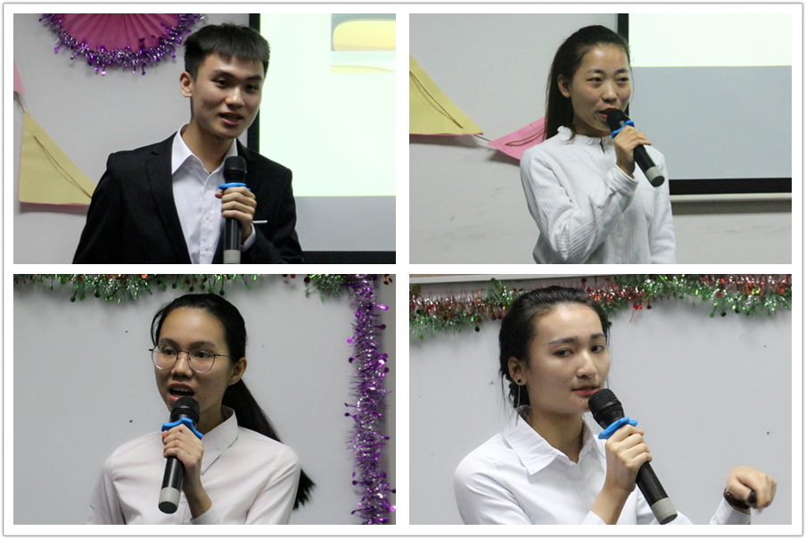 13位同学在决赛前两天已经完成题目和出场顺序的抽签,在短短的时间中不仅需要完成教案的撰写、ppt制作还有说课的准备,及其考验选手的专业功底。参赛选手们教学目的明确,思路清晰,教学课件的设计富有新意,逻辑清楚,体现了较好的驾驭教材、教学设计的能力和良好的语言表达能力,获得了老师们的一致好评。随后评委老师刘爱兰也对选手在比赛过程中出现的紧张、口语发音等问题进行了指正,同时也希望选手们在今后能多参加比赛或上台演讲,以此来提高自身把握、处理教材的能力。经过激烈的比拼,郭雷胜凭借良好的教案设计与活跃的课堂氛围获得一级的第一名,钟达荣以较高难度的说课和良好的英语发音获得二级的桂冠。