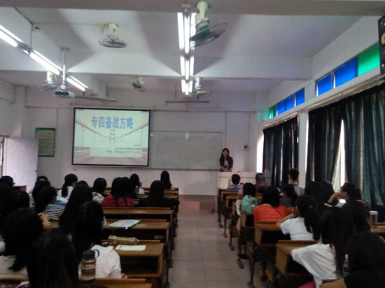 会议开始,黄玉亭分别从全国、独立学院及必赢官网三个角度来分析了2012年英语专业四级考试情况,以此突出了专四备考的紧迫感和必要性。紧随着2011级学生代表通过精美的PPT,倾情相授,向同学们分享了自己备考时详细的计划和独特的技巧。卢穗娟跟大家分享了自己精密的备考计划和练习真题的技巧;刘洒玫认为听力模块需要不间断地练习,建议在错题集中战胜词汇与语法题,在总结重点句型、语法结构的基础上巩固写作模块;张鸿萧为大家推荐了听力练习软件并主张泛听变精听,在阅读备考中要注重扩大自己的单词量和阅读量;陈旭鹏分享了“在快乐中成功”的备考心态,鼓励大家树立积极的心态、享受备战收获的过程。最后,徐超发表了激情昂扬的动员讲话,并为大家介绍了专四成绩优秀的个人和集体享受“优先评优、优先发展入党”的奖励机制。