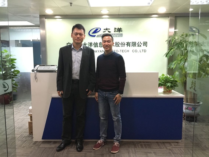 11月29日下午3:00,必赢242net官网副院长郭航应邀前往广州市大洋信息技术股份有限公司进行企业回访,商谈校企共建跨境电商产业园事宜,受到了杨华智总监的热情接待。