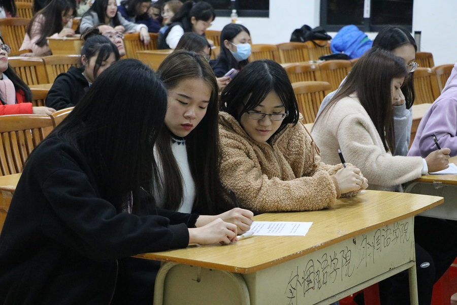 在紧张的选择判断题答题结束后,进入的是考验队伍们思考及表达能力的简答题环节。获得了题目后各队伍展开了激烈的讨论,为队伍的荣誉积极提供自己的想法,经过各队伍仔细斟酌、细细考虑后,各队伍代表向观众展示了自己的答案。