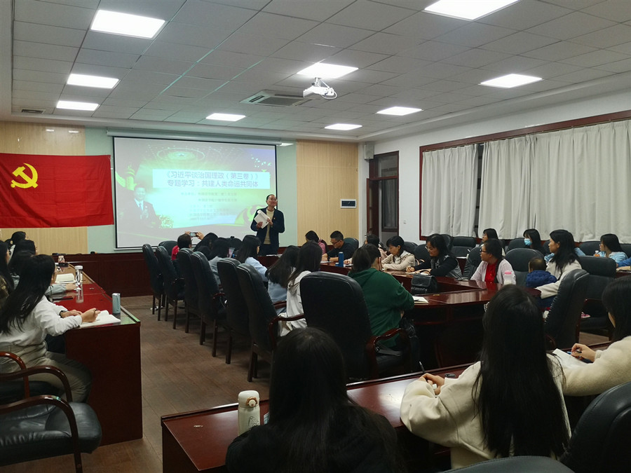 为学懂弄通做实《习近平谈治国理政》第三卷的重要精神,总体把握、深刻领会《习近平谈治国理政》第三卷的重大意义和逻辑理路,引导广大党员、干部读原著、学原文、悟原理,必赢242net官网教工第二党支部携手17级学生党支部于11月30日在第二行政楼308共同开展《习近平谈治国理政》第三卷专题学习。此次活动主要学习了《习近平谈治国理政》第三卷第十七章的内容,学习活动由教工第二党支部书记潘文晗主讲,学院党总支书记徐超、教工第二党支部的党员、入党积极分子及17级学生党支部全体党员参与学习。