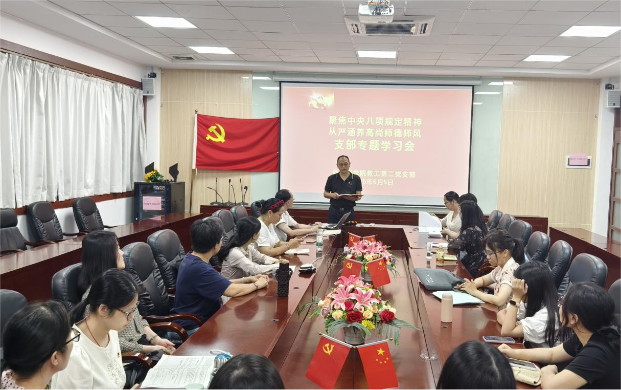 6月5日,必赢242net官网教工第二党支部在第二行政楼308会议室召开以“聚焦中央八项规定精神 从严涵养高尚师德师风”为主题的深入贯彻中央八项规定精神学习教育专题会,会议由支部书记唐海民主持,全体党员参加。