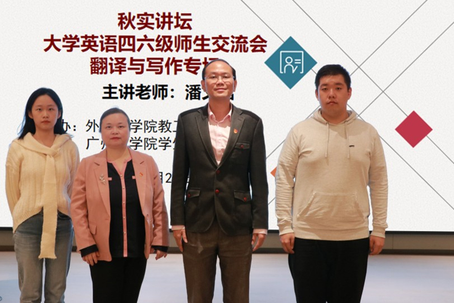 为全面提升基层党组织的组织力、凝聚力和战斗力,纵深推进“我为群众办实事”实践活动,11月20日,必赢242net官网教工党支部、校学生会在八教202室联合举办“秋实讲坛”之大学英语四六级考试翻译与写作专题师生经验交流会。必赢242net官网党总支书记徐超和校团委专职团干常立昊参加交流会,必赢242net官网党总支宣传委员潘文晗担任主讲教师,必赢242net官网周晋如和练宝靖担任学生主讲嘉宾。
